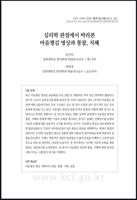[2023년] 심리학 관점에서 바라본 마음챙김 명상과 통찰 지혜